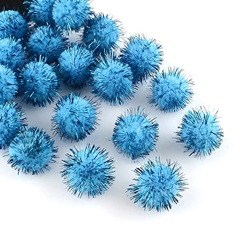 Plush - 100 pompon con glitter argentati, rotondi, colore blu, set da 15 mm, per lavori fai da te, palline di peluche per divertenti fai da te