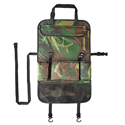PLUSINNO TM Seggiolino Auto organizzatore della Parte Posteriore, Multi-Tasca Borsa da Viaggio Bagagli, Sacchetto di rifiuti per i Giocattoli, Snack, lattine, Le Bevande (Camouflage Verde)