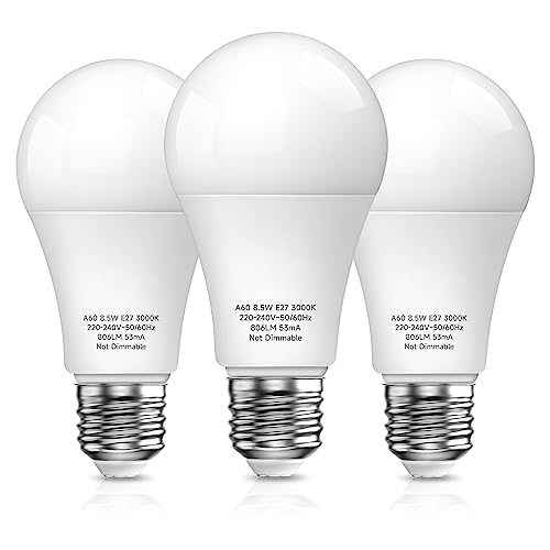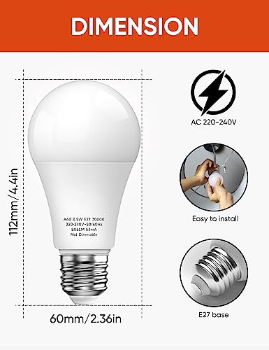 【Risparmio energetico super luminoso】 La lampadina LED E27 da 8,5 W può sostituire la lampadina a incandescenza da 60 W, fornisce un'emissione luminosa di 806 lumen e una luce bianca calda da 3000K, risparmiando fino al 90% sulla bolletta elettrica. Non c'è ronzio. [Nota: questa lampadina non è dimmerabile, non utilizzare con dimmer. ]