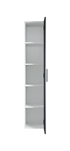 Pluto - Armadietto da bagno, mobile a scaffale, mobile alto, 150 cm, colore bianco con antracite