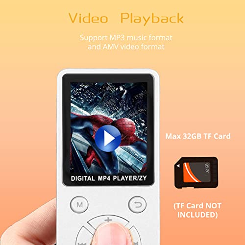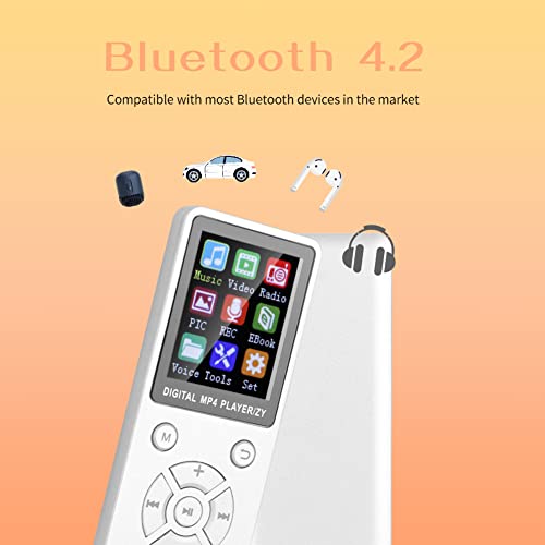 Plyisty Lettore MP3 MP4 da 32 GB con Bluetooth 4.2, Lettore Musicale Portatile con Schermo a Colori da 1,8 ", 6-8 Ore, Supporto per e-Book, Immagini, Video, Radio, Registrazione(Bianca)