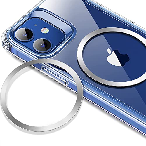 Pnakqil anello in metallo universale compatibile con MagSafe Kit di conversione di ricarica magnetica wireless,per iPhone 13/13Pro Max/12 Samsung S21/S22 2 pezzi - Argento (magnetico non intrinseco)