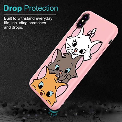 Pnakqil Apple iPhone Xs/X Cover,Custodia per Apple iPhone Xs/X Silicone TPU Cover Case Antiurto Antigraffio Ultrasottile Back Case Cellulare Rosa Chiaro,Gatto 03