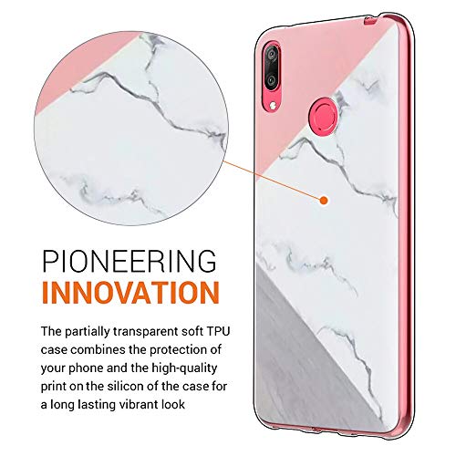 Pnakqil Caso Telefono Huawei Y7 2019 Cover,Morbido Silicone TPU Trasparente Ultrasottile Anti-Caduta Antiurto Impermeabile per Huawei Y7 2019,Marmo Rosa Bianco