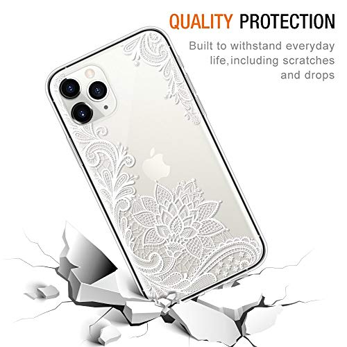 Pnakqil Copertura del Telefono Compatibile con Apple iPhone 11 PRO Cover,Morbido Silicone TPU Trasparente Ultrasottile Anti-Caduta Antiurto Impermeabile per Apple iPhone 11 PRO,Fiore Bianco
