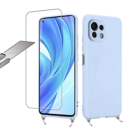 Pnakqil cordino Collana Cover per Xiaomi Mi 11 Lite 4G/5G 6.55", con 1 x proteggi schermo, cordino regolabile Custodia morbida in silicone smerigliato, custodia morbida in TPU con cordino,Viola