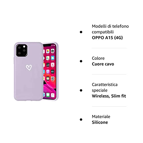 Pnakqil Cover Compatibile con OPPO A15 (4G), Custodia Morbida TPU Silicone con Cartoon Disegni Pattern, Ultra Slim Antiurto Bumper Case Protettiva per OPPO A15 4G, Cuore cavo