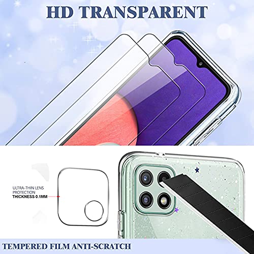 Pnakqil Cover Per Samsung Galaxy A22 5G Custodia Donna Glitter Crystal Flessibile TPU Silicone Case per Samsung A22 5G Cover 1 Pz Fotocamera 2 Pz Pellicola Protettiva Vetro Temperato 6.6" Trasparente