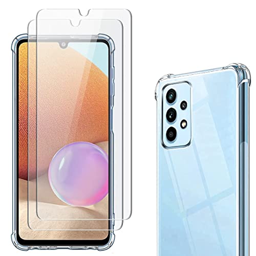 Pnakqil Cover per Samsung Galaxy A32 4G 6.4 ", 2 pezzi di protezione dello schermo, custodia protettiva in silicone TPU trasparente, protettiva antiurto,Compatibile con Samsung A32 4G