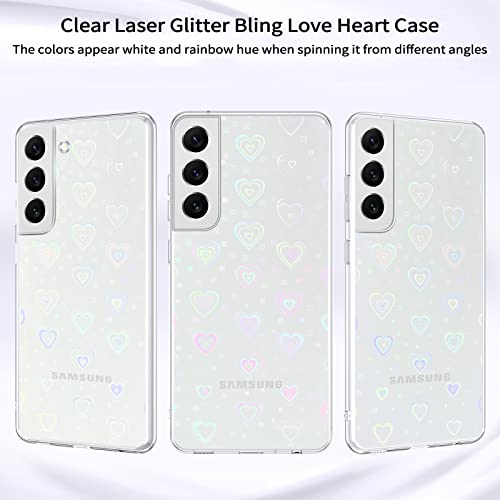 Pnakqil Cover per Samsung Galaxy S22 5G Trasparente Glitter Gradiente Cuore Disegni Custodia per Donna Ragazza Morbido Silicone TPU Antiurto Anti-Graffio Case per Samsung S22 5G