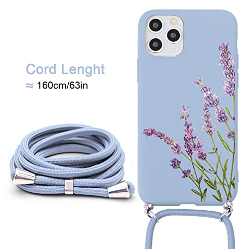 Pnakqil Custodia per Apple iPhone 11 Pro Max con Regolabile Cordino, Antiurto TPU Silicone Cellulare Cover con Cute Design, Collana Case Compatibile con iPhone 11 Pro Max 6,5 Pollice, lavanda