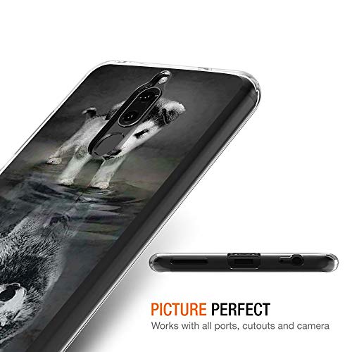 Pnakqil Huawei Mate 10 Lite Cover Trasparente, Premium Custodia Silicone con Disegni Leggero Ultra Sottile TPU Morbido Antiurto 3d Pattern Bumper Case per Huawei Mate 10 Lite, Cane Lupo