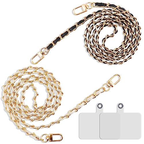 Pnakqil 2 Pezzi Corda per Smartphone Universale, Cordino da Collo Catena Collana Tracolla Laccio per Cellulare Universale Catena per Cellulare Compatibile con iPhone/Samsung/Huawei(Bianco+Nero)