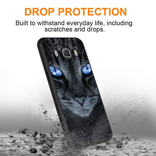 Pnakqil Samsung Galaxy J5 2016 Custodia, Cover Silicone Nero con Disegni 3d Pattern Ultra Slim TPU Morbido Antiurto Bumper Case Protettiva per Samsung Galaxy J5 2016, Gatto Dagli Occhi Blu