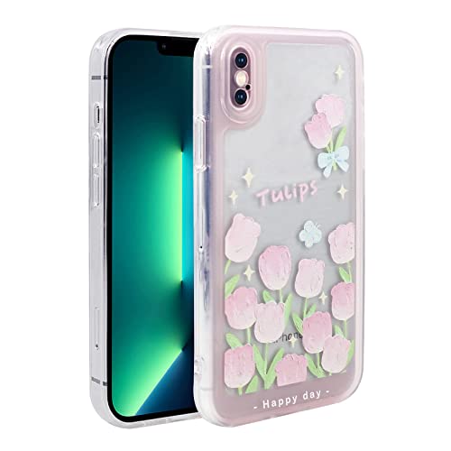 PNATEE Cover per iPhone XS Max, Custodia Trasparente TPU Soft Gel Silicone Ultra Slim Sottile Flessibile Case per iPhone XS Max Posteriore Protettiva con Antiurto, Farfalle Blu e Fiori Rosa