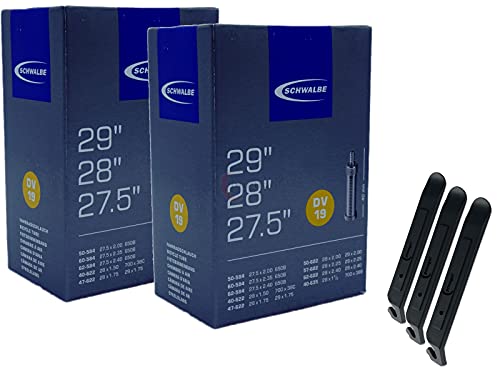 Pneugo! Schwalbe - Set di 2 camere d'aria per bicicletta, 29 pollici, valvola flash 40-622/62-622 DV19 + 3 leve per pneumatici