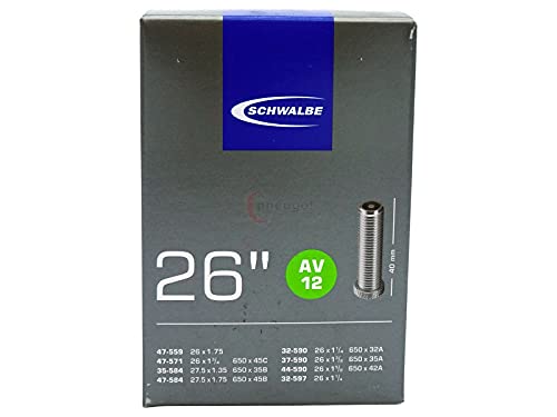 Pneugo! Schwalbe - Set di 2 camere d'aria per bicicletta, 26 pollici, valvola automatica 32-590/47-584 AV12 + 3 leve per pneumatici
