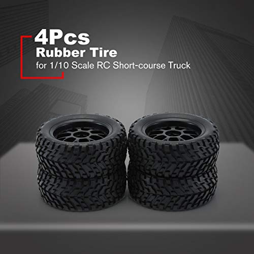 Pneumatico in Gomma per Pneumatici 4 Pezzi con mozzo in plastica per Scala 1/10 RC Camion a Breve Corso Superficie Antiscivolo Pneumatico in Gomma Accessorio RC (Nero) ITjasnyfall
