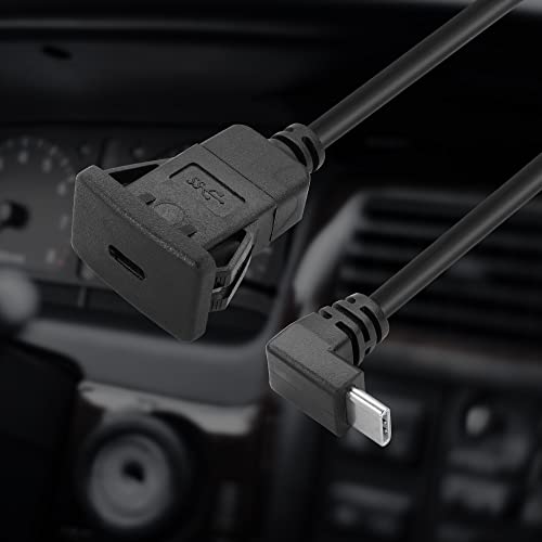 PNGKNYOCN 50cm USB C 2.0 Cavo di montaggio a filo, Angolo Retto Quadrato Tipo C Maschio a femmina Pannello Cavo di estensione a filo con fibbia per auto, barca, moto (type c 2.0 Front Bend)