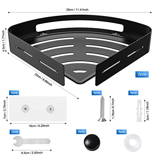 PNNP Mensola da Doccia Angolare Senza Foratura 2 Pezzi, Mensola Bagno Adesiva Portaoggetti Doccia Acciaio Inox con 2 Ganci, Porta Oggetti da Bagno per Shampoo Sapone Bagnoschiuma (Nero)