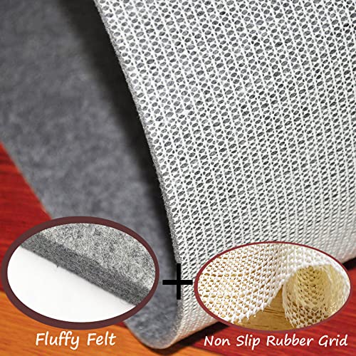 Tappetino antiscivolo resistente (feltro + griglia in gomma): la superficie morbida del feltro sulla parte superiore può bloccare i tappeti e la griglia in gomma sulla parte inferiore è ideale per afferrare tipi di pavimenti, quindi i sottotappeti a doppia superficie possono essere fissati saldamente il tuo tappeto a posto. Può evitare di scivolare quando cammini o balli sui tappeti.