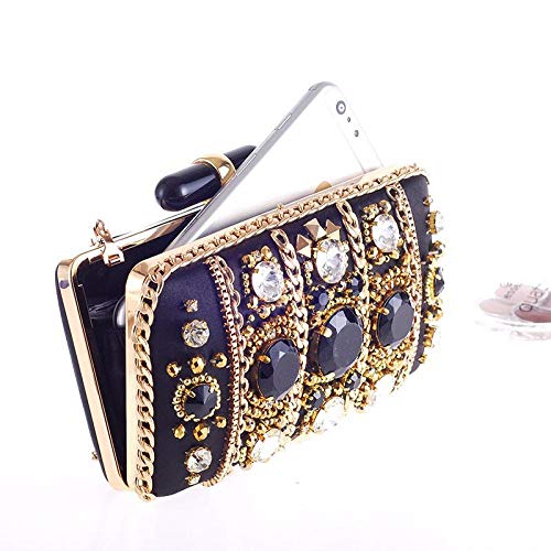 Pochette Donna Accessorio Vintage Con Perline A Catena Borse Da Sera Da Donna Pochette In Metallo Borse Da Sera A Tracolla Borse Per Feste-Nero_18.5×13.5Cm