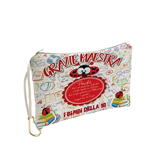 Pochette Donna Bianca in Tela Personalizzata con testo '' COCCINELLA CON NOME '' per Maestra scuola Elementare Infanzia Asilo, Idea Regalo di classe fine anno scolastico