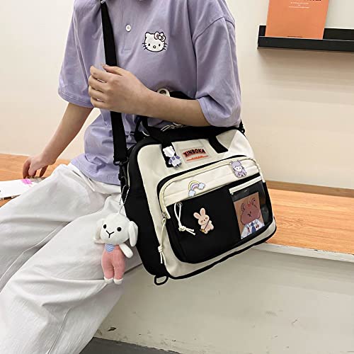Pochette da donna,Borsa da donna,Borse a tracolla,Borse sotto il braccio, Zaino a spalla Kawaii Studente Giapponese Distintivi Borsa a tracolla, Nero