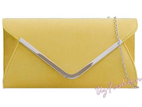 Pochette da donna in camoscio tinta unita per matrimoni, feste, balli studenteschi e serate, Giallo (Yellow), Medium