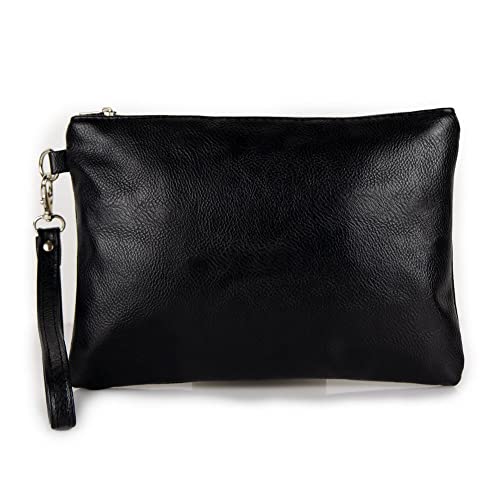 Pochette donna elegante nera Borsa a mano Borsetta grande da sera passeggio Clutch ragazza con maniglia da polso semplice viaggio porta chiavi cellulare trucchi autunno inverno 2023 2024 Ecopelle Nero