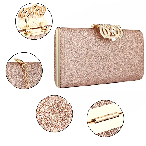 Pochette da donna con glitter e catena per feste serali, Colore oro rosa., Etichettalia unica