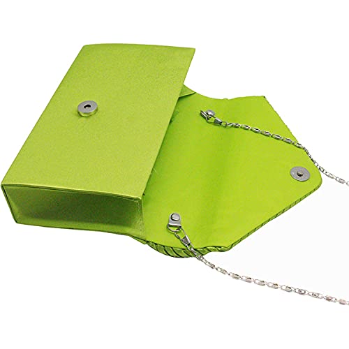 Pochette da donna, in raso, con busta, da sera, per matrimoni, feste, balli, feste, feste, feste, Verde, Borsa Messenger
