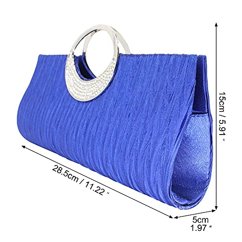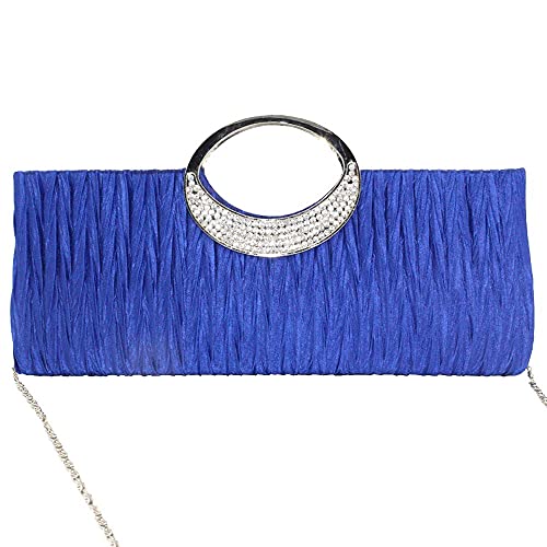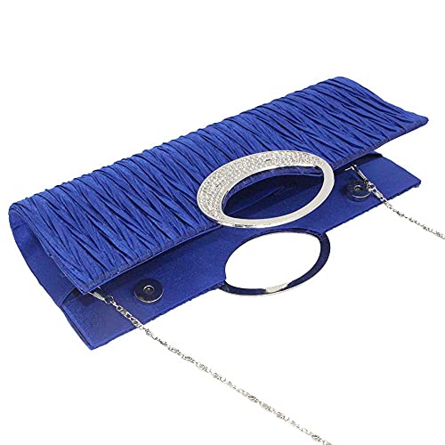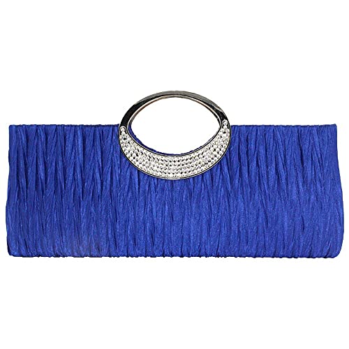 Pochette da donna in raso con strass a pieghe, da sera, da matrimonio, da sera, da sera, da matrimonio, con paillettes, in raso, Blu reale (Blu) - N00159ZS