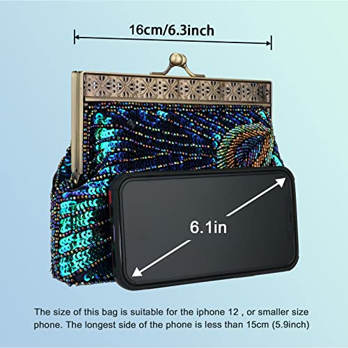 Pochette da pavone con paillettes vintage Borsa da sera con perline, Borsa da vista con turchese per matrimonio