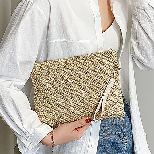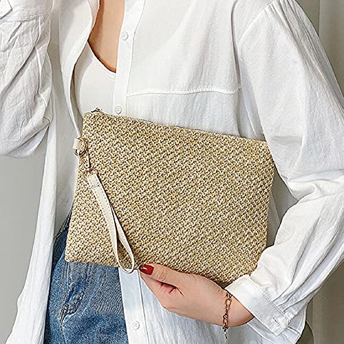 Pochette da Polso Donna in Paglia Intrecciata Borsa Portamonete Portafoglio da Polso Elegante Clutch con Cinturino e Cerniera Portacellulare Portafoglio Casual Estivo da Spiaggia