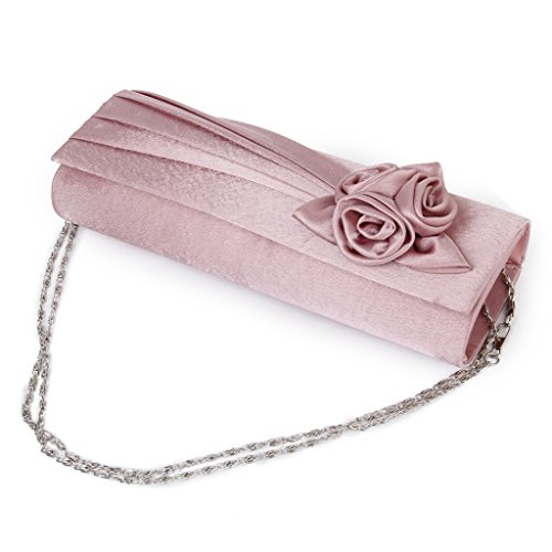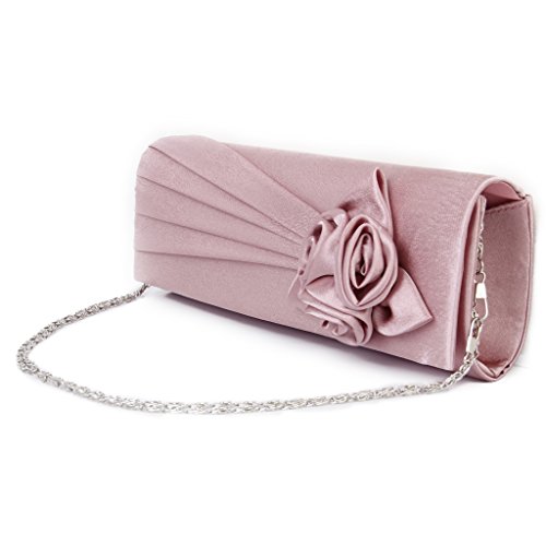 Pochette da sera da donna, con tracolla in raso rosa, Rosa (Pale Pink), S