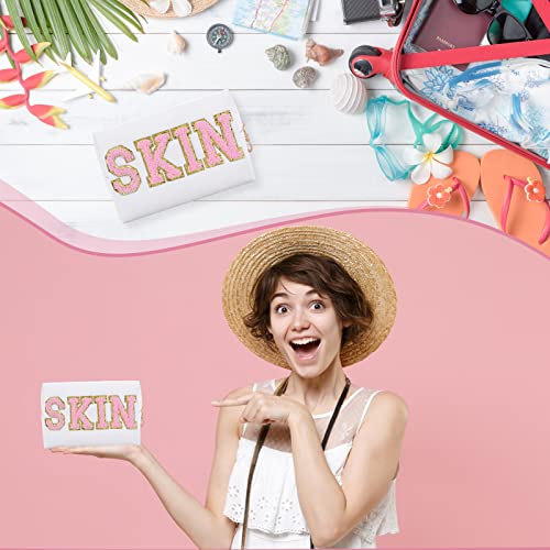 Pochette Trucchi da viaggio Trousse Trucchi Donna SKIN Lettere Borsa Cosmetica Impermeabile in Pelle PU Borsa Cosmetica con Cerniera Portatile Borsa per Il Trucco delle Ragazze Accessori da Viaggio
