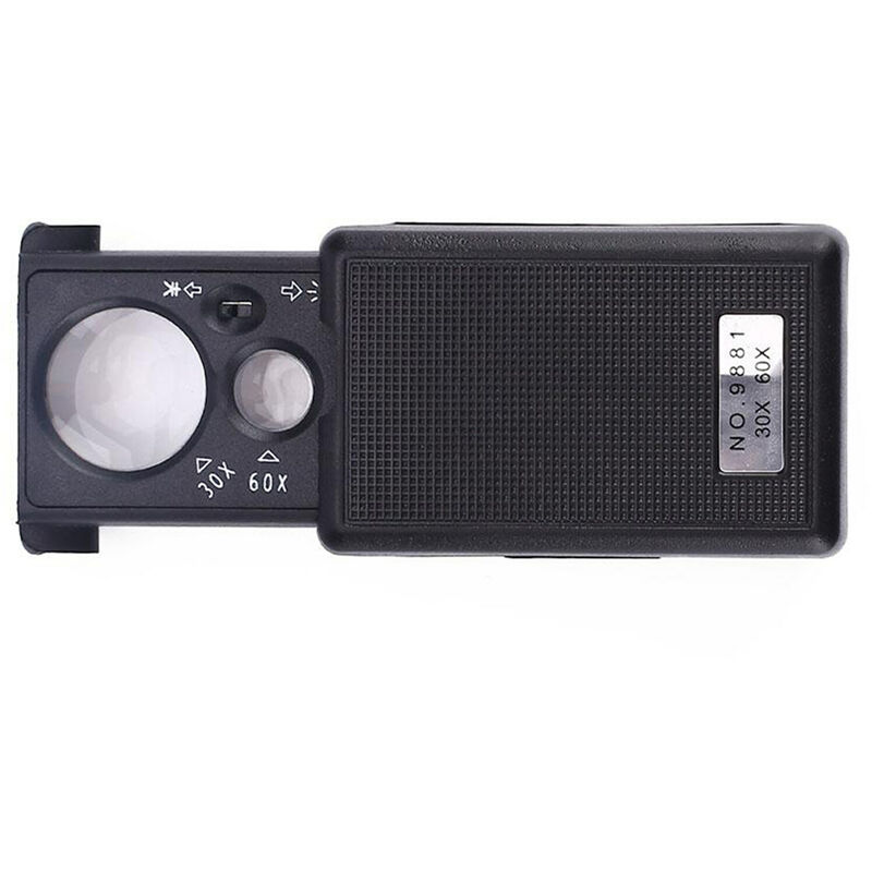 Questa è una lente d'ingrandimento multifunzionale per l'identificazione di gioielli, può essere utilizzata per distinguere la valuta in alcuni paesi o aree, ottima per gioielli, monete, francobolli e oggetti d'antiquariato ecc. Sono integrate due luci a LED e una luce nera UV. Questa lente d'ingrandimento leggera e portatile vetro con 2 ingrandimenti progressivamente più forti: 30X, 60X, puoi portarlo e usarlo ovunque tu vada. Caratteristiche: L'obiettivo di alta qualità con potente zoom offre maggiore nitidezza e chiarezza. con 2 ingrandimenti progressivamente maggiori: 30X, 60X. Dotato di due luci LED ecologiche ed efficienti dal punto di vista energetico che forniscono un'area di visualizzazione uniformemente illuminata anche in condizioni di scarsa illuminazione. Viene fornito anche con 1 Luce nera UV per il rilevamento di banconote contraffatte. Le luci funzionano con tre batterie a bottone AG10 incluse;