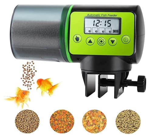 PODAZZ Mangiatoia Automatica Acquario, Distributori Automatici di Cibo per Pesci con Display LCD capacità 200mL e Impostazione del Tempo di Mangime, Adatto per Acquario,Vasche Per Tartarughe - Verde