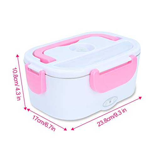 Podazz Scaldavivande Elettrico Portavivande 2 in 1 Doppio Voltaggio Porta Pranzo di Acciaio Inossidabile, Lunch Box Termo Portatile per Ufficio e Auto/Camion, 220V & 12V - 1.5L/40W(Rosa)