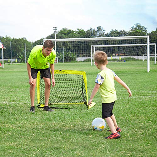 PodiuMax Porte da Calcio Durevole e Portatile con Borsa da Viaggio, Set di 2 Porte, Allenamento o tiri Liberi Sia all'Interno Che all'Esterno, Colore Giallo/NER