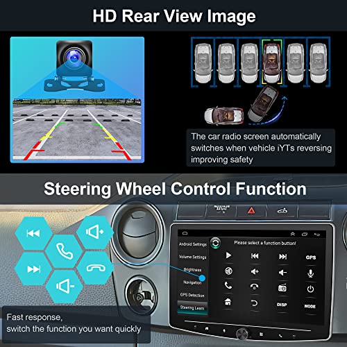 【Autoradio Android 11 1 Din con Schermo oscillante】La dimensione di installazione di questa autoradio 1 din è 180 (Lunghezza)*145 (Larghezza)*50 (Altezza)mm, con schermo grande da 10 pollici oscillante. Il touchscreen è ad alta sensibilità, ad alta trasparenza con bordo curvo 2.5D, touch screen capacitivo in vetro temperato resistente ai graffi, in grado di guardare film in HD, TikTok e YouTube. Lo schermo può oscillare a destra e a sinistra, in alto e in basso.