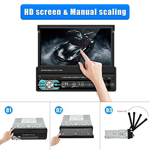 【Autoradio a 1 Din con Schermo Manuale】Le dimensioni di installazione di questa autoradio 1 din sono 172 (lunghezza)*137 (larghezza)*50 (altezza), con schermo touchscreen da 7'', che può essere ritratto manualmente, veloce e conveniente. Quando il grande schermo non è necessario è possibile chiuderlo manualmente, il piccolo schermo può visualizzare FM, si prega di assicurarsi di collegare ILL piccolo cavo luminoso.