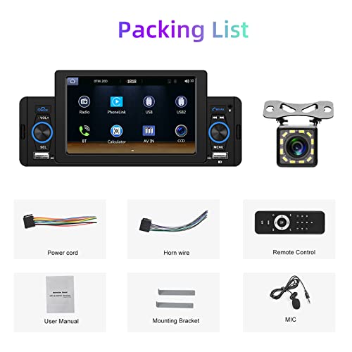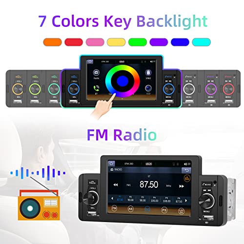 [Touch Screen da 5 Pollici] - Touch screen capacitivo da 5 pollici, dimensioni di installazione: 177 (L) x 58 (L) x 50 (A) mm. Con schermo IPS, angolo di visione più ampio e gamma di colori più ampia, supporta la ricarica rapida del telefono cellulare, scheda TF/SD, ingresso AUX, riproduzione del disco U, 7 colori dei pulsanti, regolazione dell'effetto sonoro EQ.