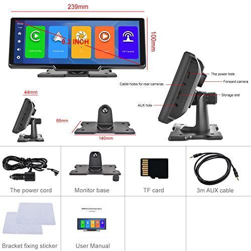 Podofo Carplay Senza Fili Android Auto Autoradio con 9,3 pollici Touchscreen Bluetooth 2 Schermo Diviso DVR con 64G SD Card Trasmettitore FM Aux-in Facile Installazione Ampia Applicazione per SUV LKW
