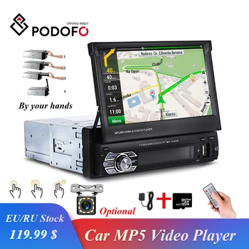Podofo Retractable Autoradio GPS Navigation Bluetooth Stereo FM USB 1din Car Radio 7" HD Touch Screen MP5 Player Mirror Link Cam