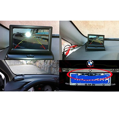 Podofo - Specchietto retrovisore pieghevole, telecamera di retromarcia senza fili e caricatore auto