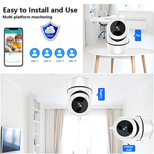 【Facile da Installare e Utilizzare】: Supporta tre metodi di installazione: soffitto, piano e parete e viene fornito con un pacchetto di viti e una base per l'installazione rapida. La telecamera IP è dotata di configurazione Wi-Fi con un solo pulsante, App Store o applicazione di download di Google Play per la connessione, supporta il monitoraggio simultaneo di telefoni cellulari e PC, funzionamento semplice, configurazione e manutenzione semplici.