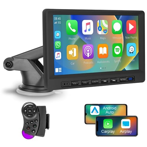 Podofo Wireless Carplay Car Radio Android Auto, Touchscreen HD da 7 Pollici, Display Carplay Portatile con Bluetooth, Mirror Link, SWC, Porta USB/TF, Supporto Ventosa/Accendisigari per Veicoli
