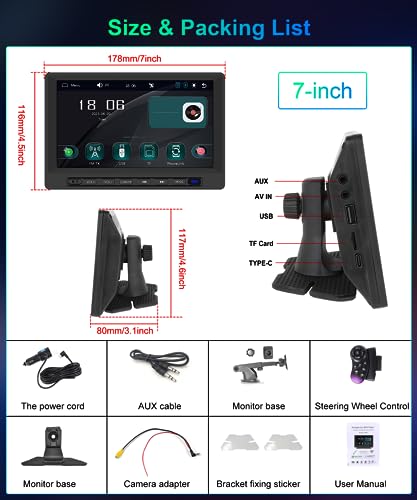 ►【Schermo Carplay portatile】Questo autoradio portatile da 7 pollici con carplay wireless e auto Android, uscita Aux, scheda TF ecc. Come lettore per auto portatile e universale, può essere utilizzato in qualsiasi modello di auto e facile da installare, montaggio a 2 vie su cruscotto / parabrezza, non devi preoccuparti del problema di adattamento, risparmia i tuoi soldi per l'installazione. Anche un regalo fantastico per la tua famiglia e i tuoi amici.